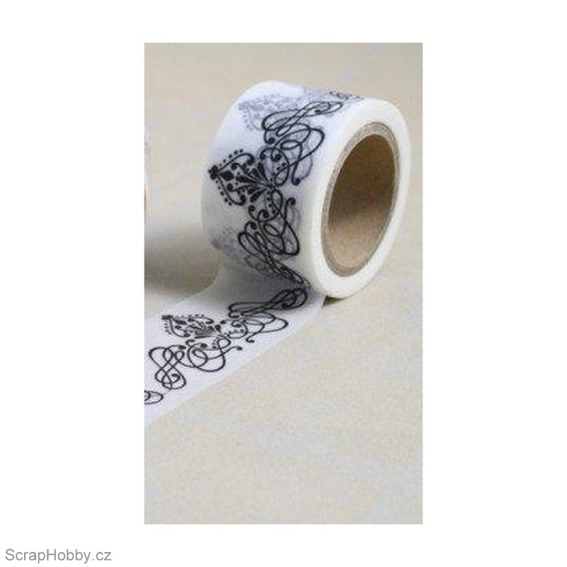 Mírně průsvitná samolepicí papírová (krepová) páska s potiskem na dekorování papíru.