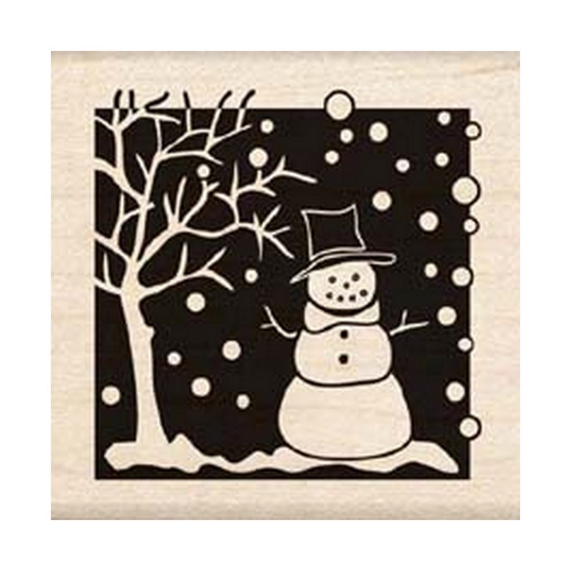 Razítko dřevěné - Sněhulák u stromu.