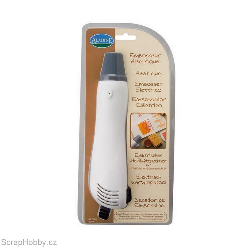 Horkovzdušna pistole na embosing, byla vyvinuta speciálně na embossing pomocí prášků. Díky pistoli se rozpouští speciální prášek na embossing do vypouklého plastického tvaru, aniž by došlo k jeho rozfoukání. Zahřívá se na 350°, proto ji lze použít na smršťovací folie, polymery, barvami na textil, papír, sušením textilních barev...