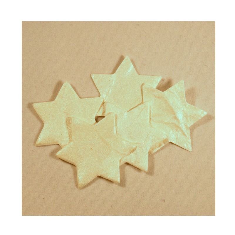Hvězdičky z ručního papíru - bílé s perleťovým povrchem.