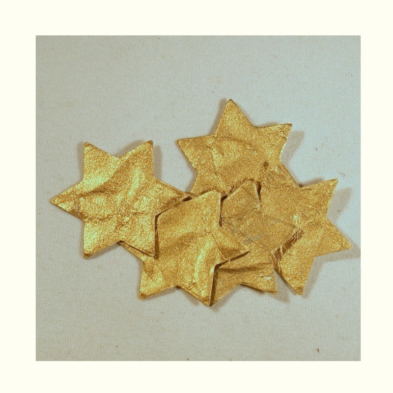 Hvězdičky z ručně vyráběného papíru vytvořené výsekem.