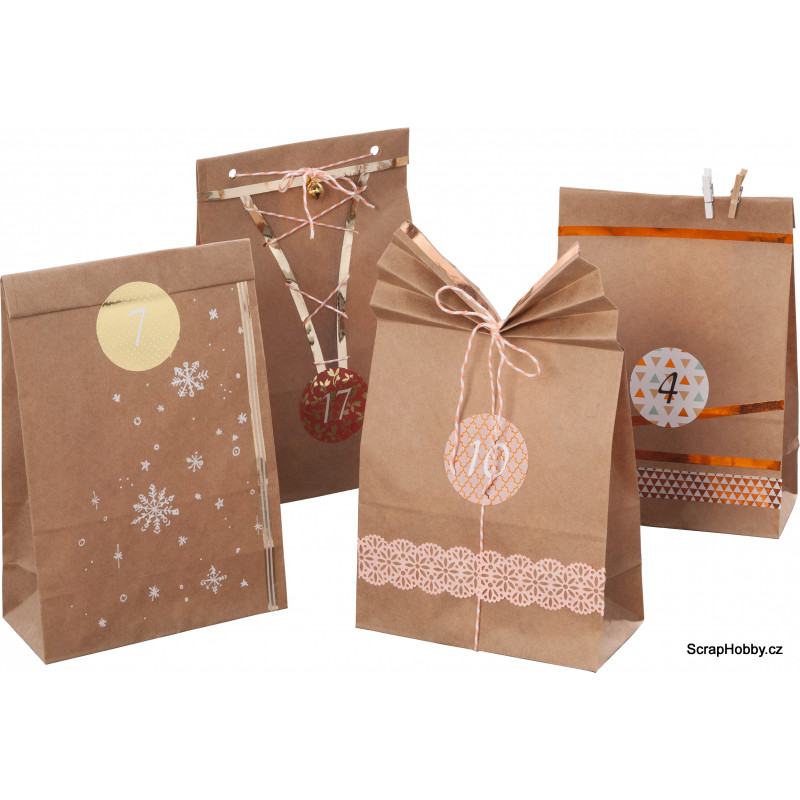 Adventní kalendář - SET- dárkové papírové tašky - NATUR