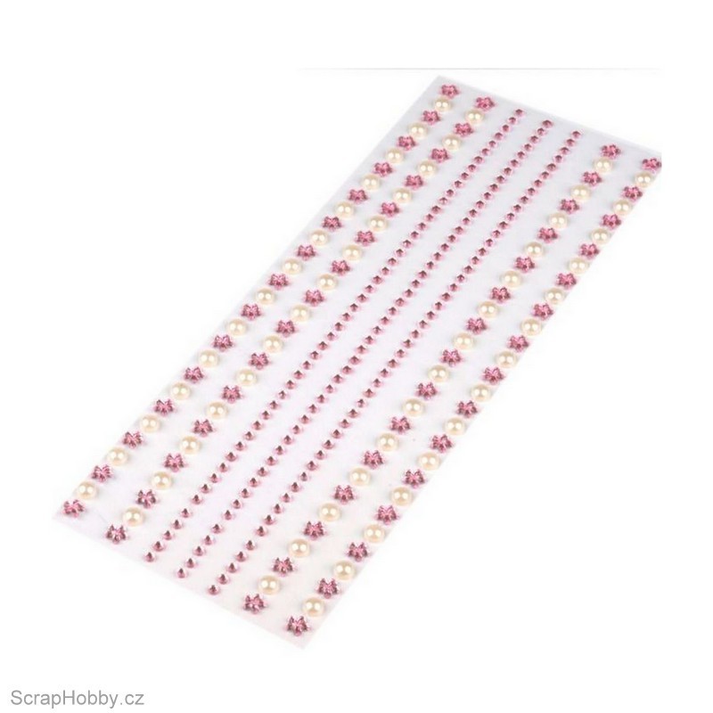 Samolepící pásky - perličky, kytičky, kamínky - růžové.