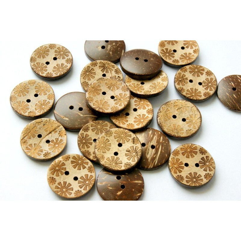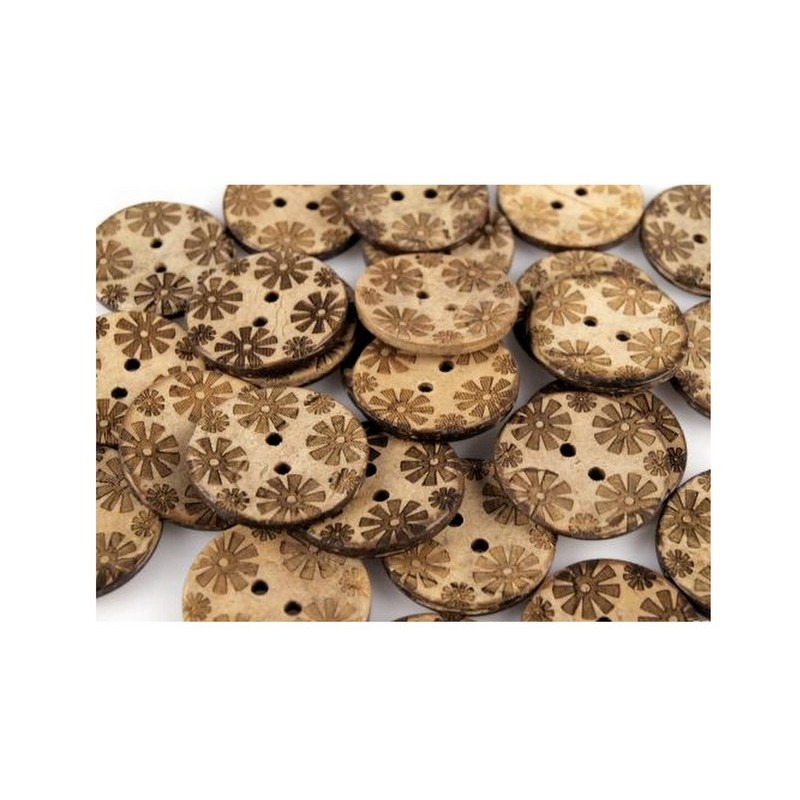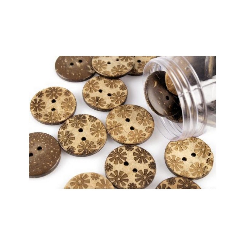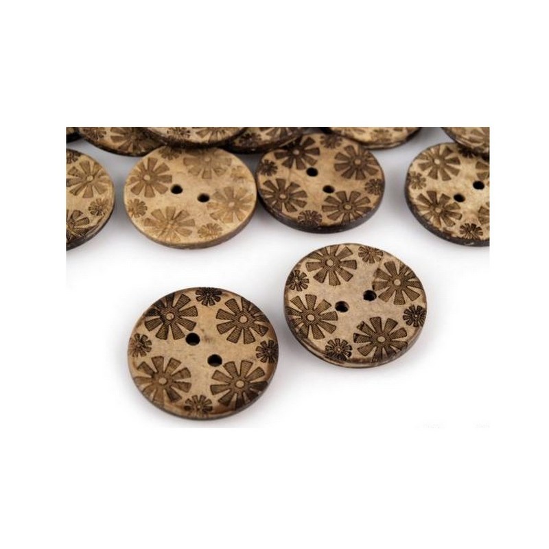 Kokosový knoflík s motivem kytiček.