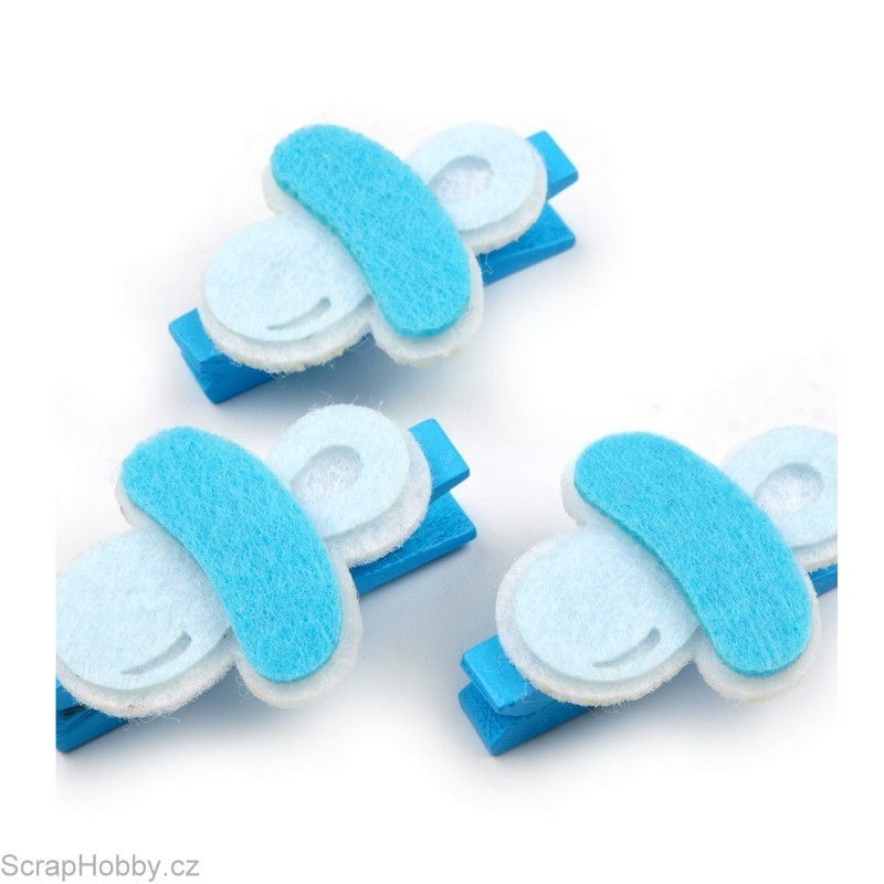Dřevěné kolíčky s dudlíkem - modré.
