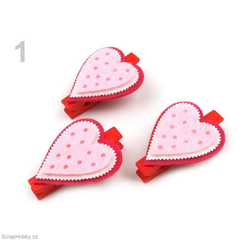 Kolíčky s filcovými srdíčky 1.