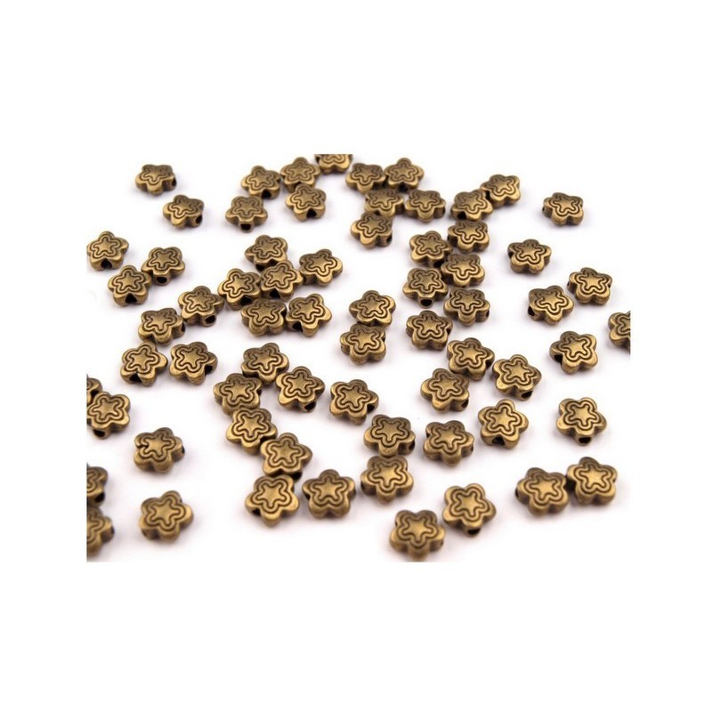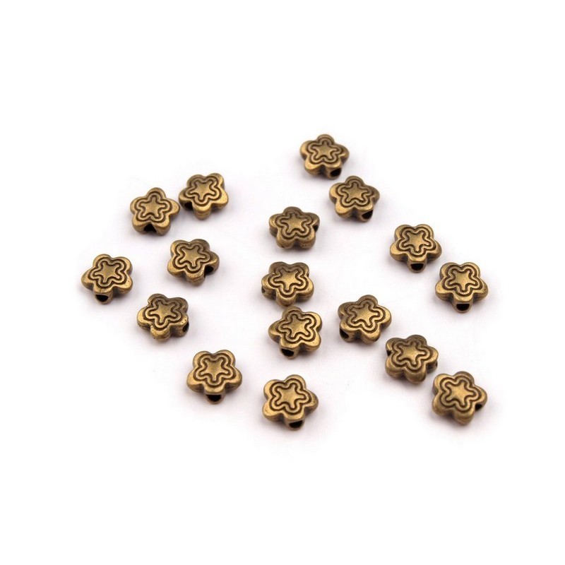 Korálek - Kovový - Kytička.- staromosaz - 7mm