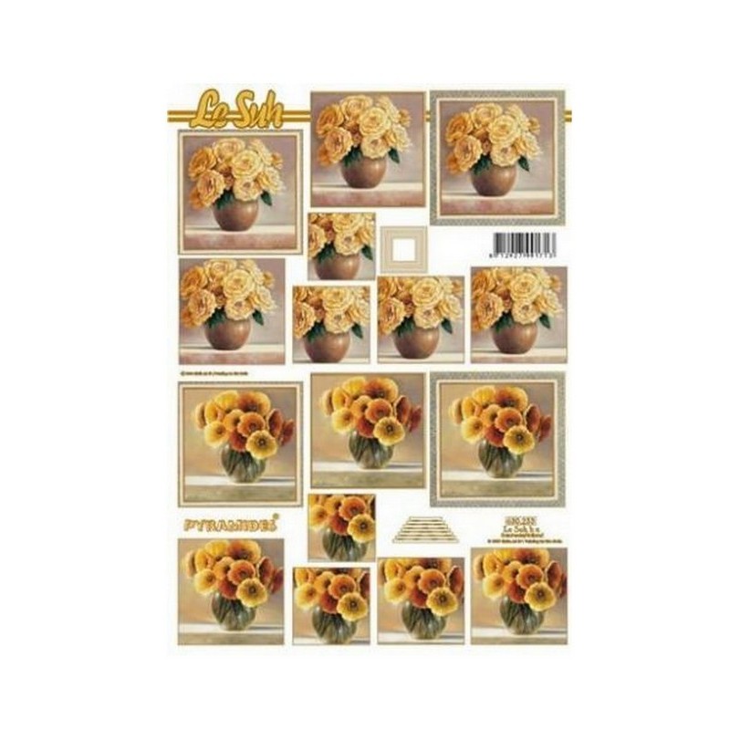 POSTUP: vystřihnou se jednotlivé motivy a od největšího po nejmenší se vrství - nejlépe pomocí lepících oboudtranných čtverečků. Výsledkem je vytvoření zajímavého 3D obrázku - pyramidy.