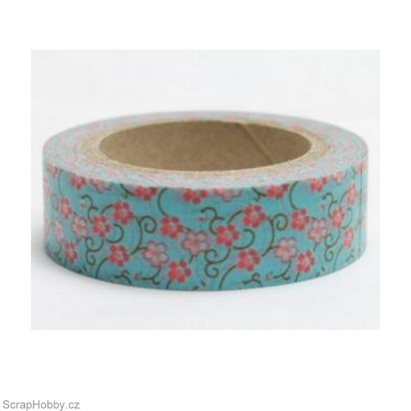 Washi páska - Drobné růžové kytičky s větvičkami