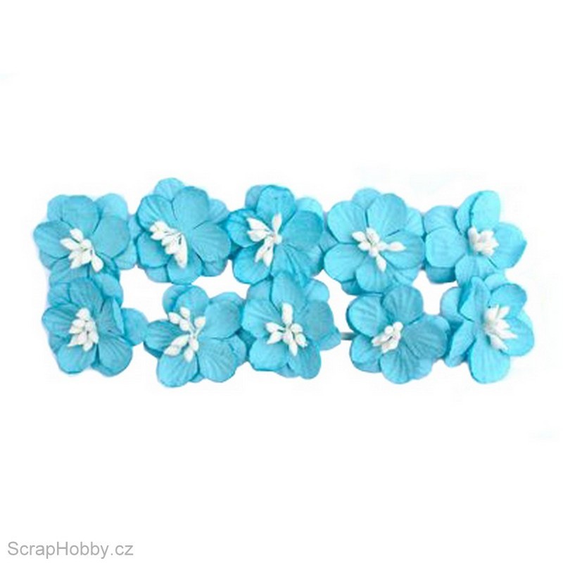 Kytičky papírové Třešňové - 10ks - Modré
