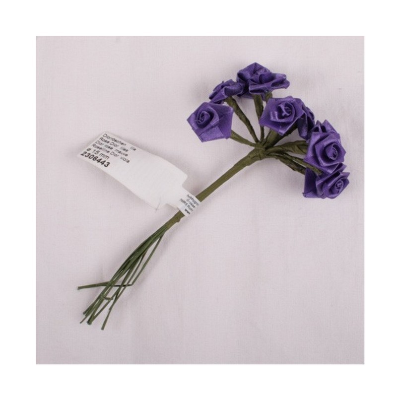 Kytičky růžiček ze saténu - fialové - sada 12ks.