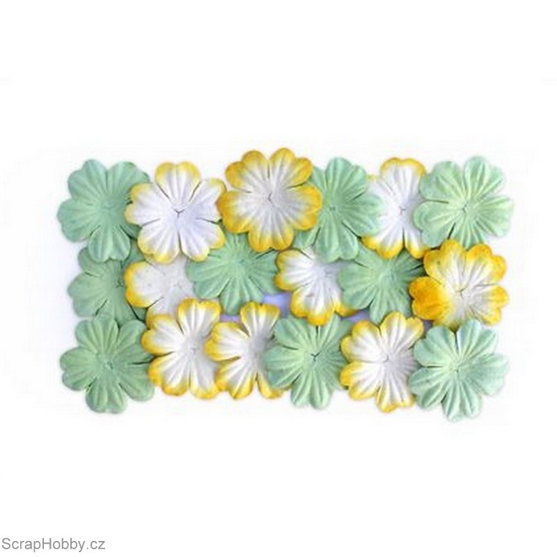 Kytičky z morušového papíru - Zelené a bílo-žluté