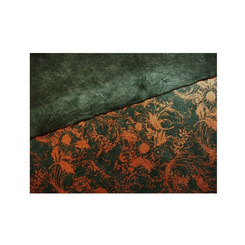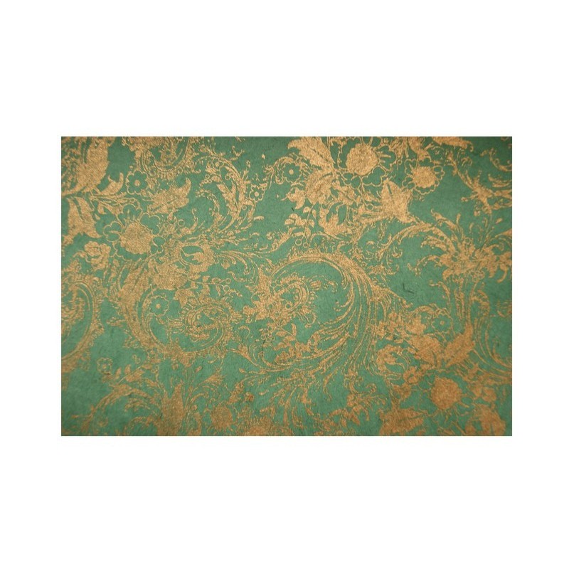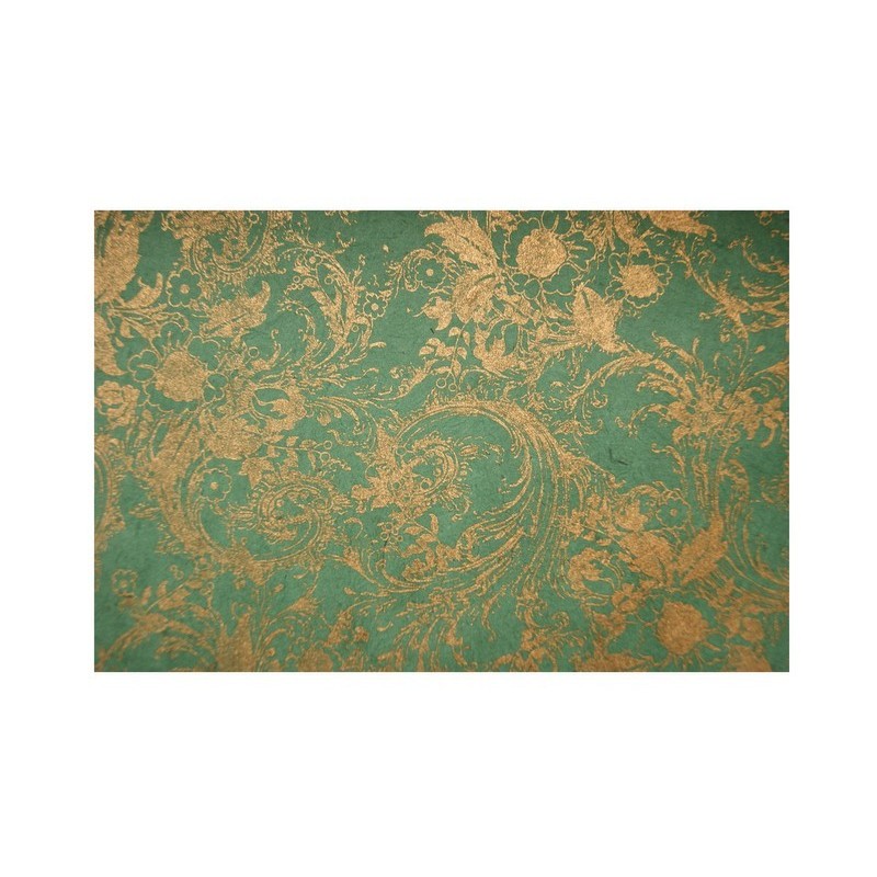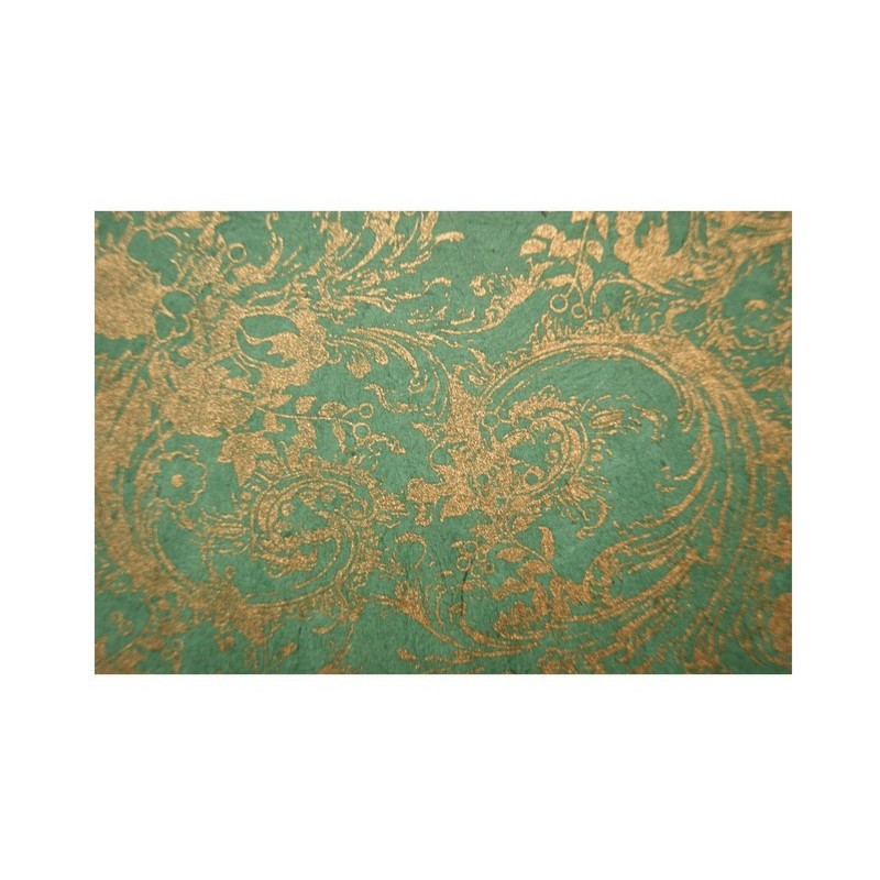 Nepálský ruční papír - Lokta - Zelený se zlatými krucánky: