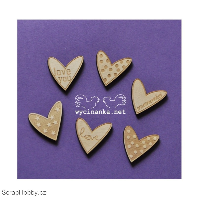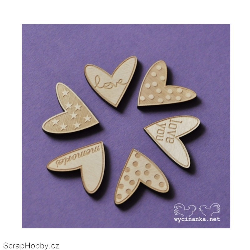 Dřevěná srdíčka - 6ks.