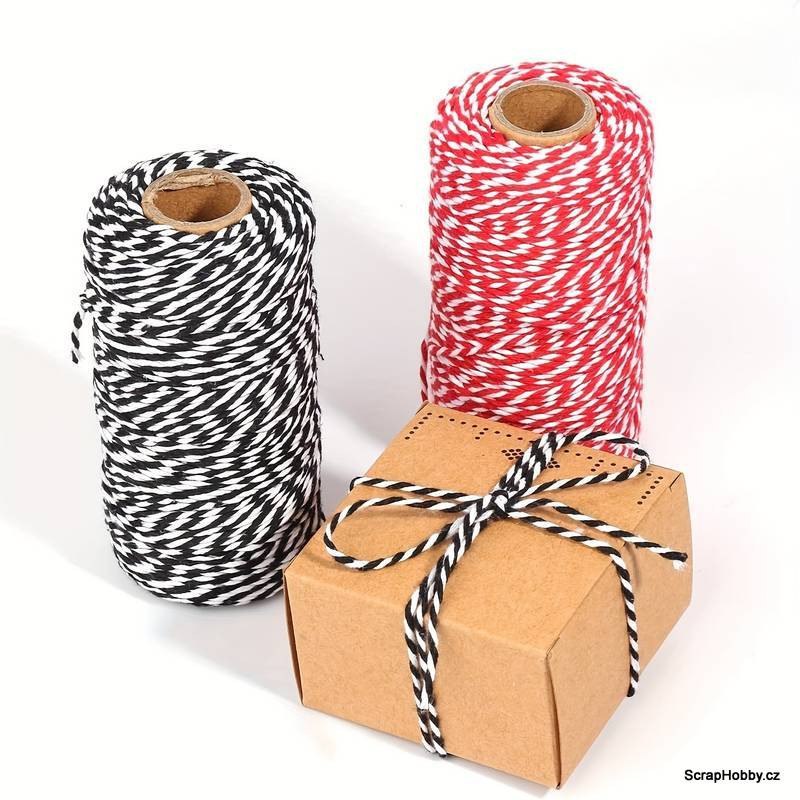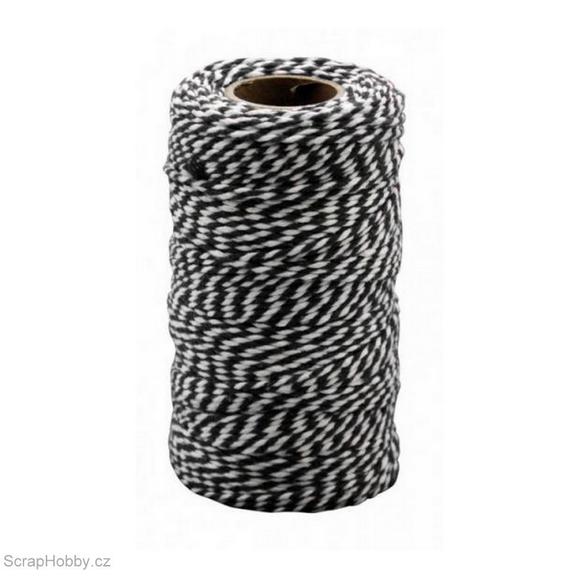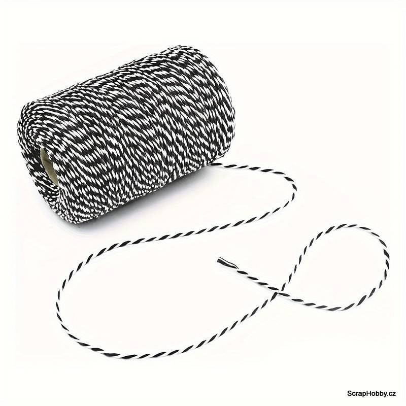 Bavlněná šňůra - černo - bílá - 2mm x 100m