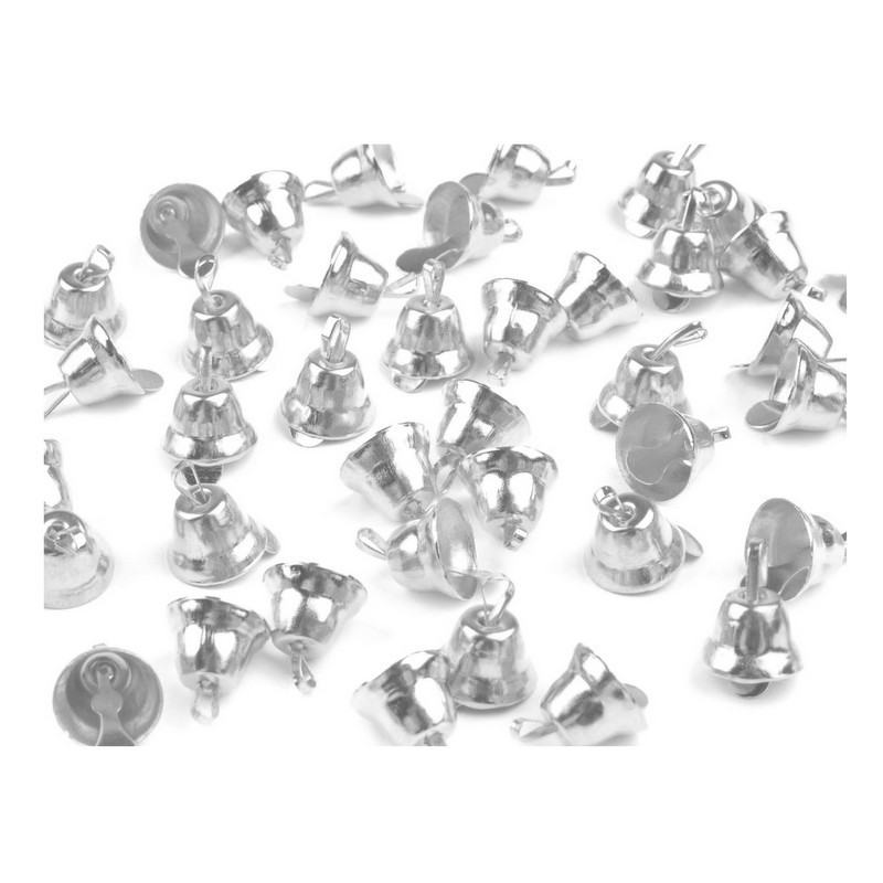 Kovové zvonečky - 7x11mm, 10ks - stříbrné.