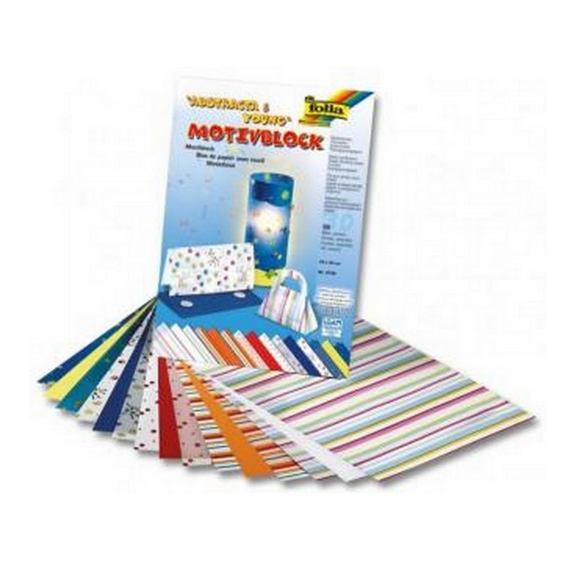 Každý motiv je použit 2x, papíry jsou různé gramáže - 3druhy (výrobce neuvádí přesnou gramáž), některé papíry jsou poloprůhledné, některé s motivy, další jednobarevné, vzájemně sladěné.