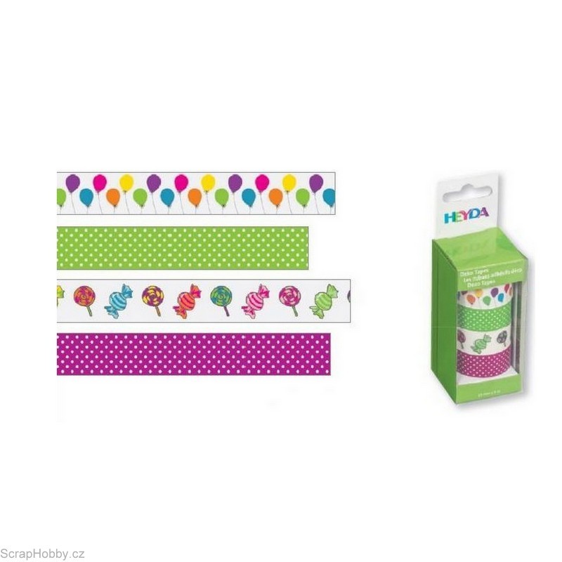 Mírně průsvitná samolepicí papírová (krepová) páska s potiskem na dekorování papíru.