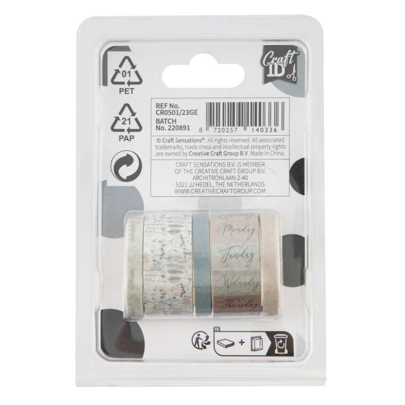 Washi páska - Sada - Dny v týdnu - 5 ks