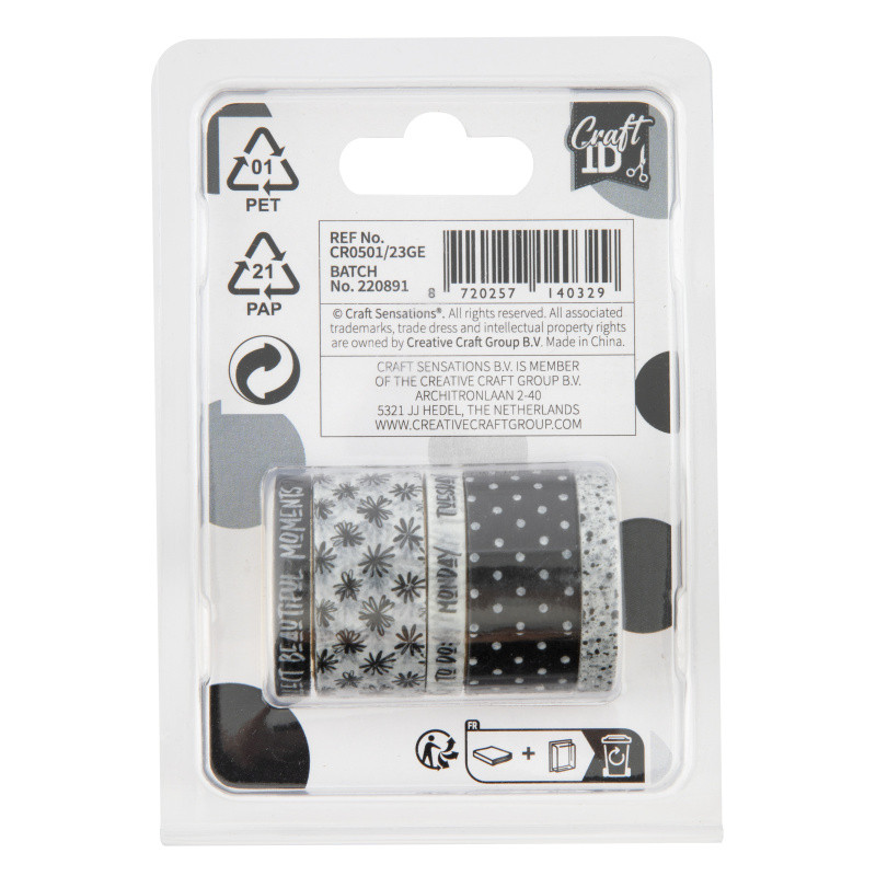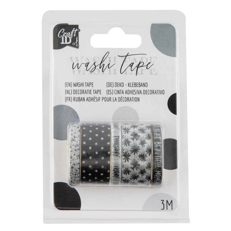 Washi páska - Sada - Černá - 5 ks