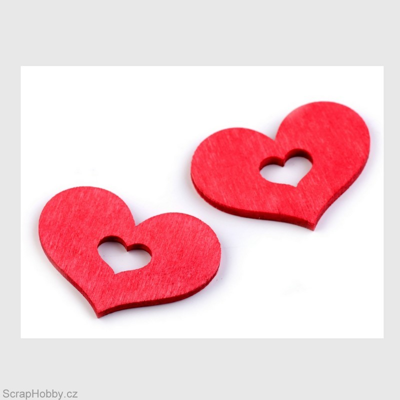 Dřevěná srdíčka - červená - 35 x 40 mm