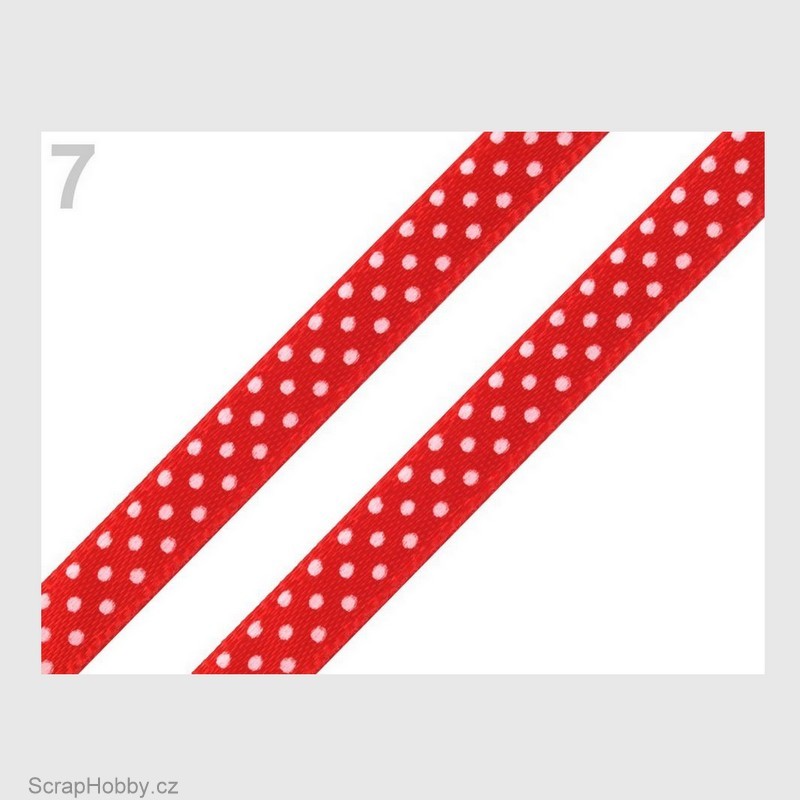 Saténová stuha s puntíky - jasně červená.
