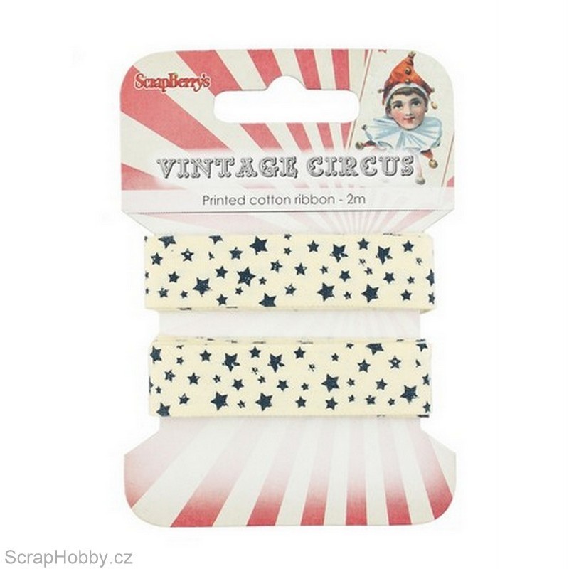 Bavlněná tištěná stuha - Vintage Circus - Hvězdy - 2m