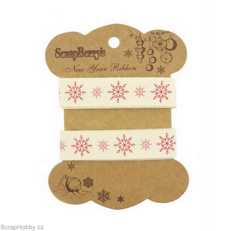 Bavlněná tištěná stuha - Vločky - 2m