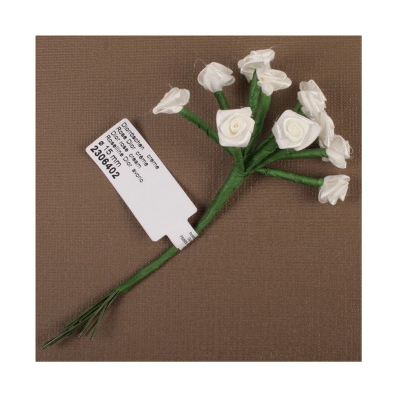 Kytičky růžiček ze saténu - krémové - sada 12ks.