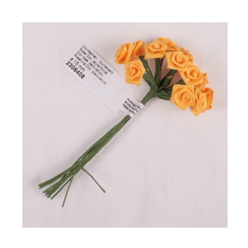 Kytičky růžiček ze saténu - tmavě žluté - sada 12ks.