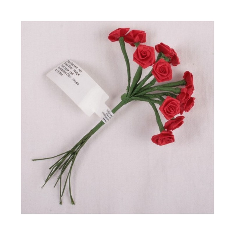 Kytičky růžiček ze saténu - červené - sada 12ks.