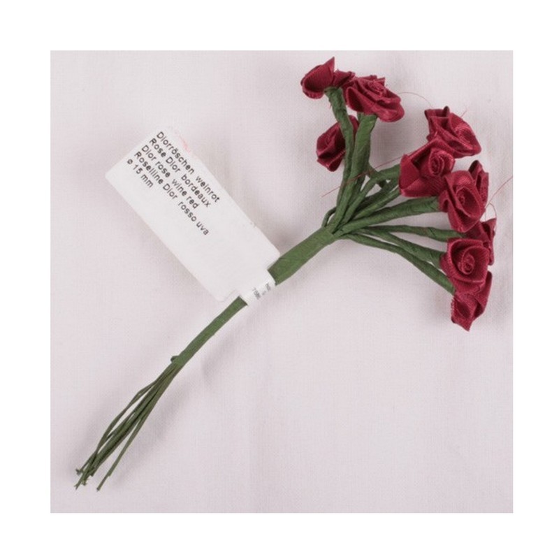Kytičky růžiček ze saténu - vínové - bordó - sada 12ks.
