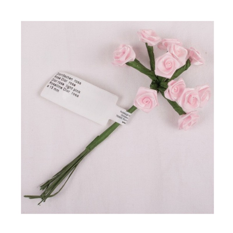 Kytičky růžiček ze saténu - růžové - sada 12ks.