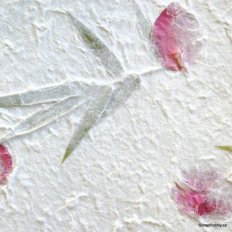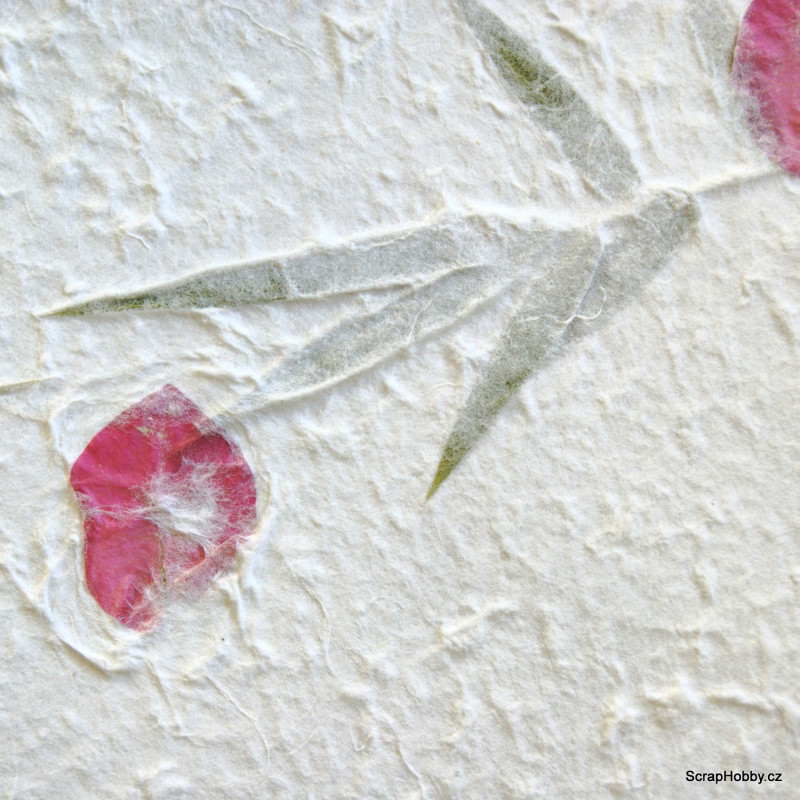 Ruční morušový papír - bambusové listy a růžové květy VI.