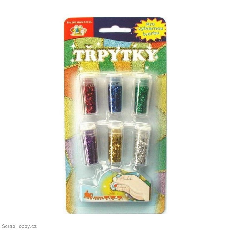 Třpytky v 6.barvách - zlatá, červená, fialová, zelená, modrá, bordó.