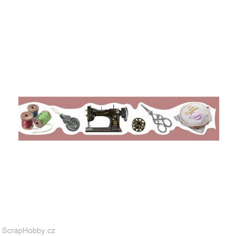 Mírně průsvitná samolepicí papírová (krepová) páska s potiskem na dekorování papíru.