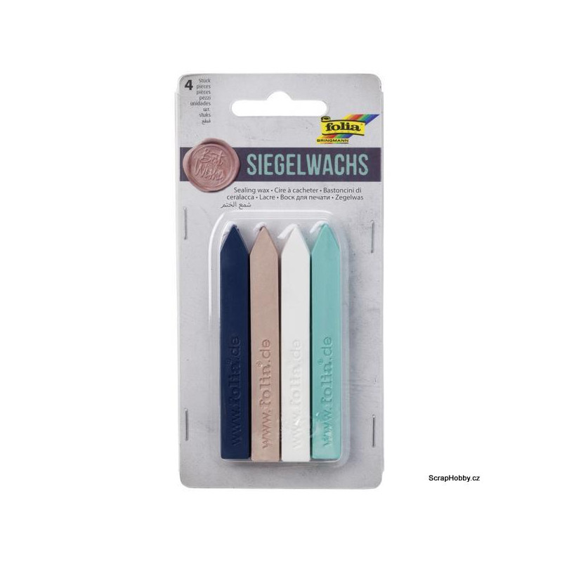 Pečetící vosk - 4 ks - růžová, mentol, bílá, tmavě modrá