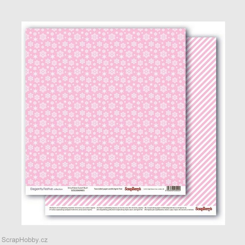 Oboustranný papír - Elegantly Festive - Snowflakes Sweet Blush.