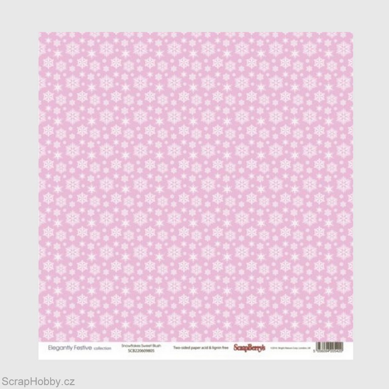 Oboustranný papír - Elegantly Festive -Snowflakes Sweet Blush