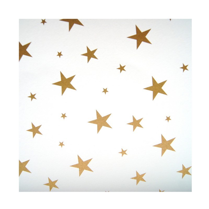 Oboustranný papír se zlatými hvězdami. Z jedné strany drobnější hvězdičky - cca 0,5cm, z druhé strany větší - cca 3cm, a 0,5cm. Hvězdičky jsou součástí papíru, nevystupují. ideální na Vánoční tvoření.